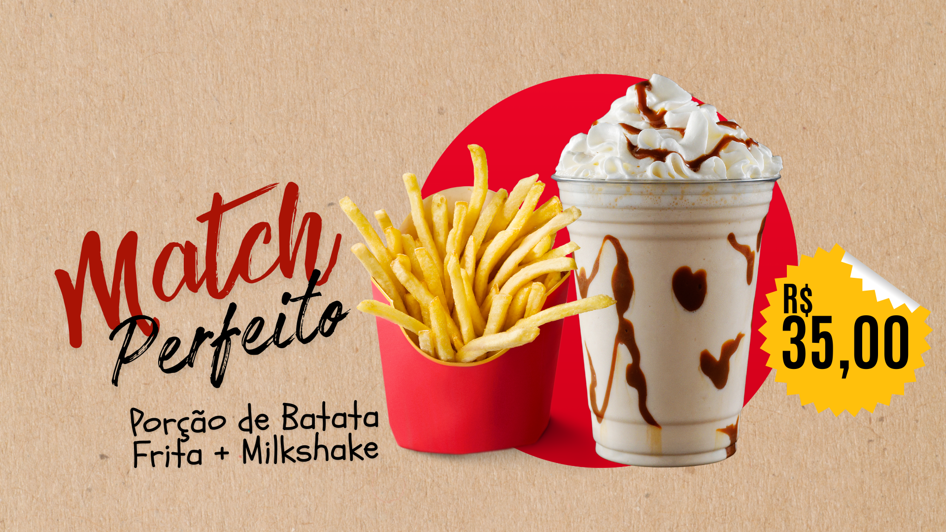 Porção de batata frita+Milk Shake de 300ml+Embalagem (R$1,50)